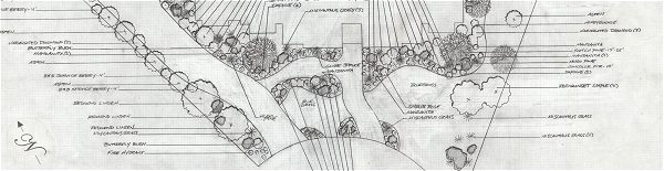 as are mulch-lined beds for planting a diverse array of shrubs